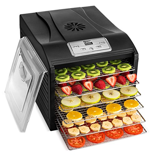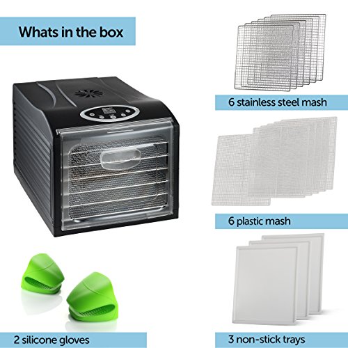 MAGIC MILL PRO Food Dehydrator, 6 Stainless Steel Drying Racks, 8 Digital Preset Temperature Settings And Timer With Automatic Shutoff - 3 Fruit Leather Trays, 6 Fine Mesh Sheets, 1 Set Ovens Mitts