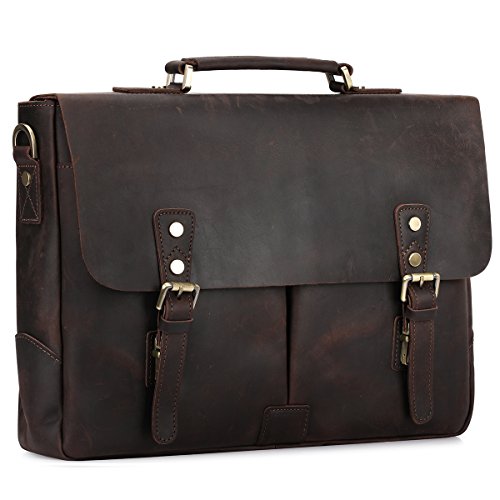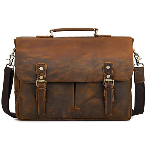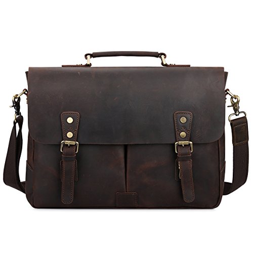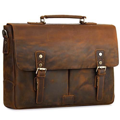 -. Title : S-ZONE Men's Crazy Horse Leather 15.6" Laptop Briefcase Messenger Bag Laptop Shoulder Bag