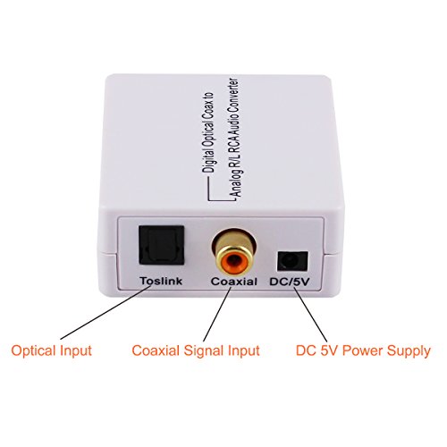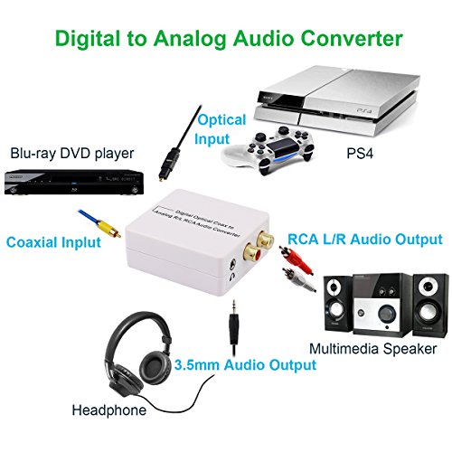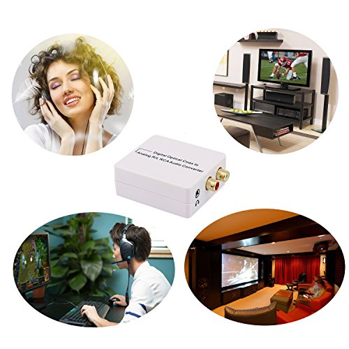 DAC Audio Converter: converts digital Coaxial or Toslink optical audio out to analog RCA and 3.5mm headphone audio. Provide electromagnetic-noise-free transmission