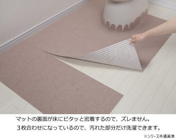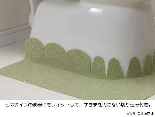 | 毎日使うトイレ周りを清潔・快適に。奥に長いタイプで便器まわりの汚れを防ぐトイレマットです。マットの裏面が床にピタッと吸着するのでズレません!撥水加工を施しているので、水をサッと拭き取れます。すきまを汚さない切り込み付。 |