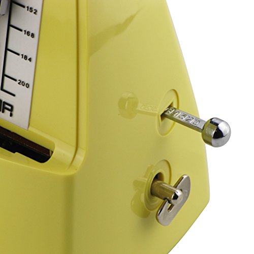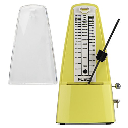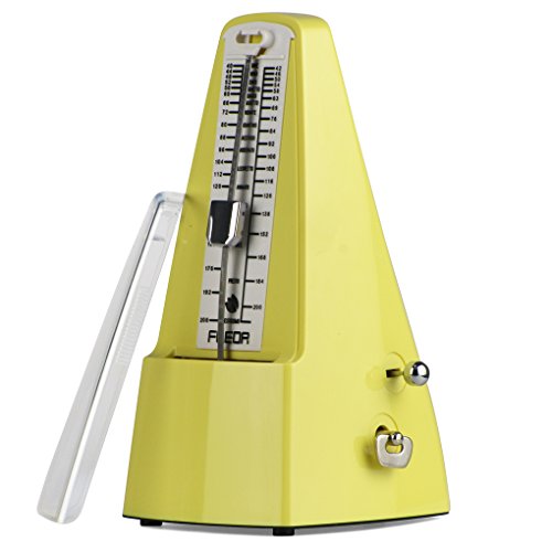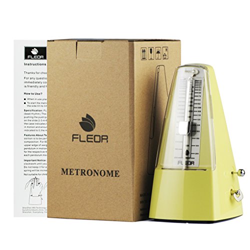 Product Description The FLEOR FM-101 Precision Mechanical Metronome is a mechanical device that emits a stable beat at various speeds, can train your speed concept, helping you to develop your own sense of rhythm.Features:^Unique fashion conical shape design, made of environmentally friendly materials, impact resistance, stability, wear resistance^Internal clock structure with gears and winding drives a pendulum, no batteries required.^Movement made of 7 pure copper gear and bell, use a special groove driving parts design, reduce lots of friction, tolerance: less than 0.08%, precise rhythm and durable, doesn't need to add lubricants any longer. Sound big, crisp.^Laser engraving scale adjustment rod, is different from the traditional stamping technology, solve swing uneven problem?move rhythm precise ,give a good visual sense of tempo.^Adjustable beat settings (0/2/3/4/6) with bell ring indication.Tempo range of 40 - 208 beat per minute, all the rhythm you need is under your control.^Mechanical metronome not only used for the Guitar /Bass/ Violin /Piano or other instruments rhythm practice, also can be used in such as: hypnosis, psychotherapy, golf, dance.Specifications:*Brand: FLEOR.*Model: FM-101*Type: Conical Pymraid.*Material: Copper Movement with hard ABS Plastic outer.*Tempo: 40 - 208bpm,Tolerance: equal or less than 0.08%.*Beats: 0, 2, 3, 4, 6*Color: Pink Yellow.*Item Size: 10.5*11.8*21.0cm(L*W*H).*Item Weight: 590g. Package Weight: 630g*The metronome comes with a matching case to keep it protected while it's not in use.*Add sponge between the metronome pendulum and scale plate to prevent the pendulum loose in transit to scratch the machines.Packing List:1 X Metronome1 X Manual1 x Paper Box 0