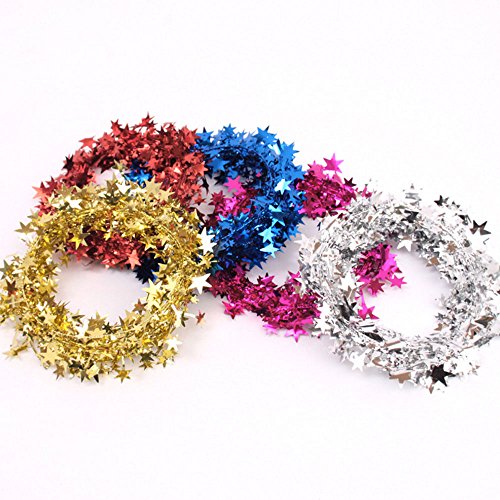 3PCS Star Garland Tinsel Stars brace,Tinsel Wire Garland Christmas Decoration Party Accessory (silver)