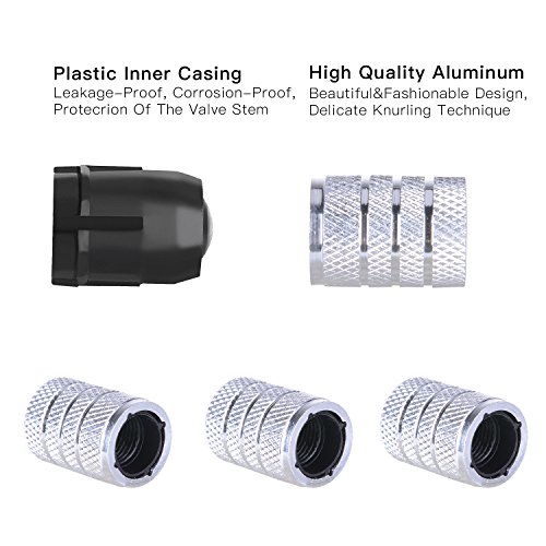 Valve Caps Prevent Corrosion,Car Dust Caps,Carsemoo Universal Aluminum&Plastic Wheel Tire Air Caps Valve Stem Cover For Car/Motorcycle,Air Leakproof And Protection Your Valve Stem (Silver 4 Pcs/Set)