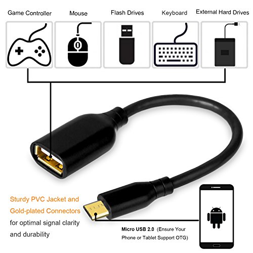 - PERFECT COMPATIBILIT - Compatible with all micro USB connector mobiles and tablets with OTG function, like Samsung Galaxy or Note series phones and tablets, HTC, Nokia, Motorola, Sony, Google Nexus series, and more Android Phones, Android Tablets, and Windows Phones.( Note: Please check your device support OTG function before purchasing)