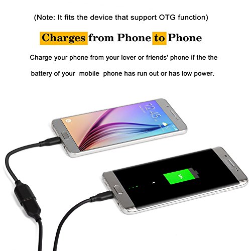 - MULTI-FUNCTION CABLE – With this OTG Cable, you can download pictures/transfer data by using flash drives directly at speed up to 480Mbps; Playing games and watch movies by connect a game controller and hard drives; Or sending or editing the files directly on your phone by using keyboard. Charge a phone from another phone via a Micro USB to Micro USB connector. (Note: Do not support OTG and charging simultaneously)