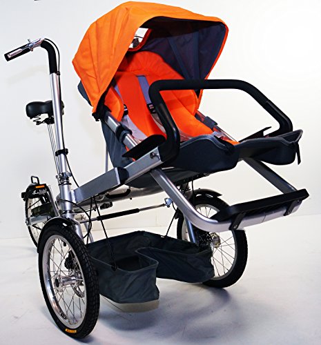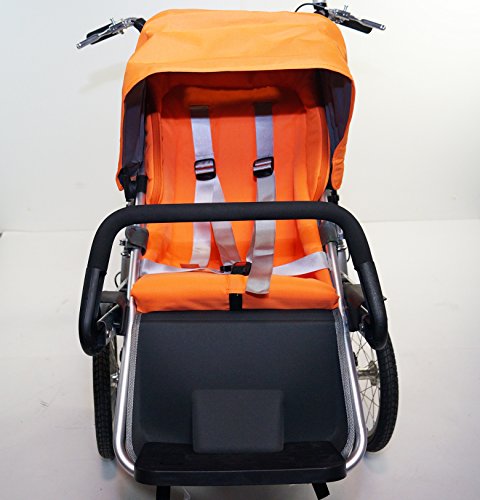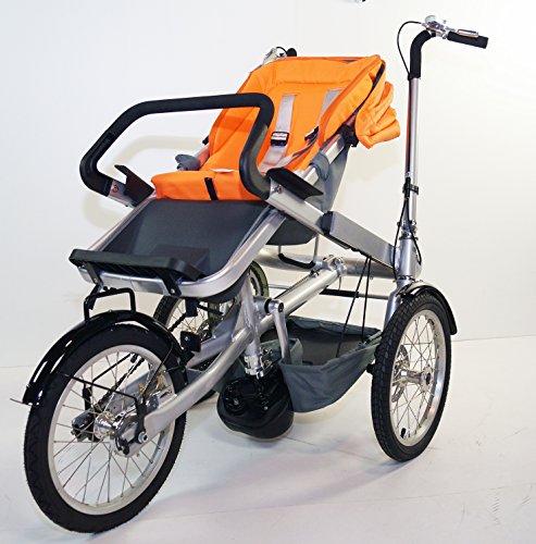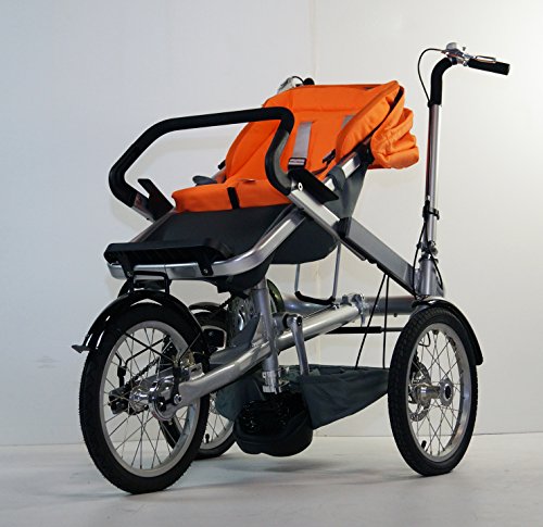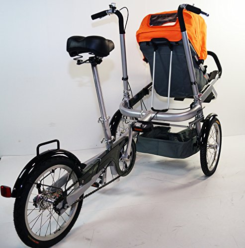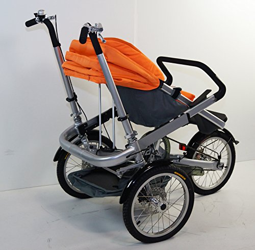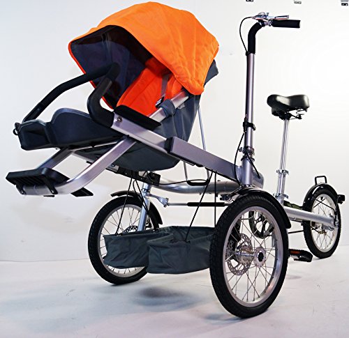 Product Description Luxury bike stroller for mom and baby from 6 month to 6 years old.Easy assemble and easy in use- convertible in just 20-30 sec. Equipped with 3 big 16' wheels and front and rear breaks.Adapter arms, rotating mud guard, converter joint, steering lock, frame disassembly connector, head cushion 0