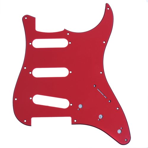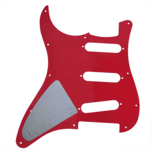 Studio : Kmise Publisher : Kmise Binding : Electronics Product Description 100% new high quality and testing is fine Item 100% like the picture shown Color: red Material: PVC Anti-scratch to protect the guitar 3-ply construction: red < Black < red 11 screw holes in the side of the pickguard Tinfoil Stick On back to protect pot switch holes. Package Includes: 1 x Pickguard Plate 0