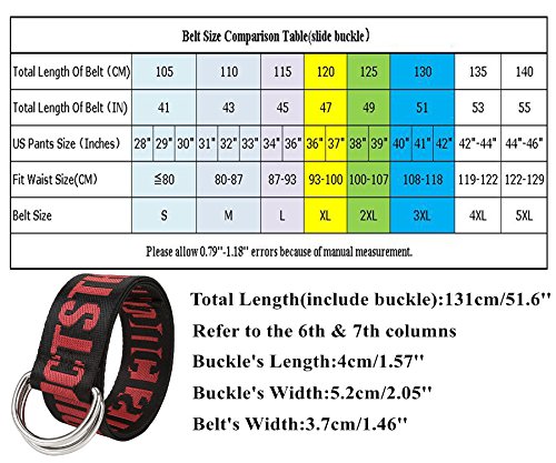 About Size: Total length(include buckle):51.2''---Belt's width:1.3''--Buckle's length:1.9''---Buckle's width:1.9'' Please kindly check your size compare with the chart image before ordering About Color: Available in 2 stripes patterns Colors may slightly differ from the pictures due to the brightness of different monitors.You will receive a similar item as pictures show.Thanks for your understanding. Occasions: Leisure look with jeans or casual trousers Sports wear at tactical or outdoor activities Package Include: 1 piece belt Nice gift for you dear family members and friends About Ayliss: Ayliss is our registered brand and it sells on global site.We focus on Apparel and Accessories. If there is any question,pls don't hesitate to CONTACT us first with MESSAGE,we are responsible sellers and value every customer. If you are satisfied with our services and products,please leave us a five star positive feedback. Your recognition will make us more confident to develop business and serve you better.Thank you!Feature