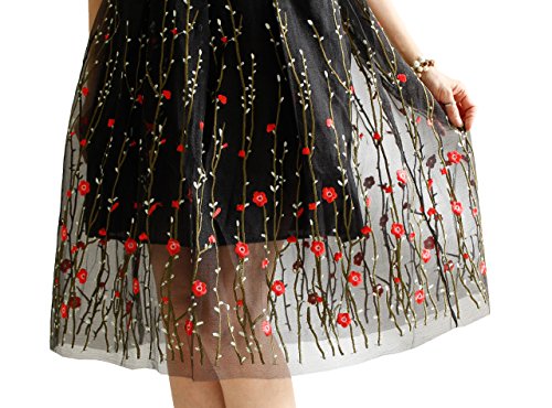 -. Title : (sawa a la mode)サワアラモード レディース Aライン プリーツ シフォン フレア 膝丈 花柄 刺繍 スカート 体系カバー