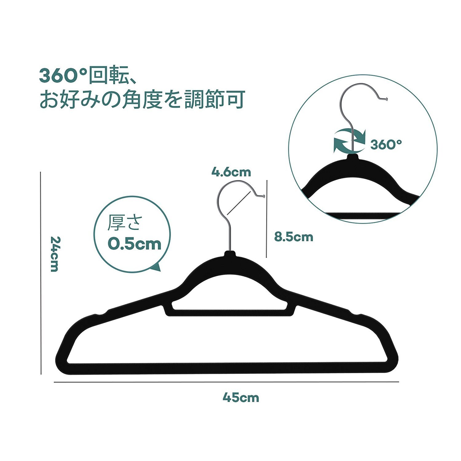 🍀実用性有り:薄くても耐荷重5kgまで、重い冬服でも安心。更にフックが360°回転でき、クローゼット以外のご使用にも便利。