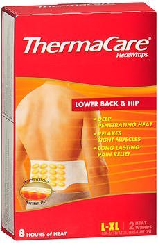 -. Title : ThermaCare Back / Hip Heatwraps Air Activated 1 Box (2 pouches) by Milliken Medical - MS80388