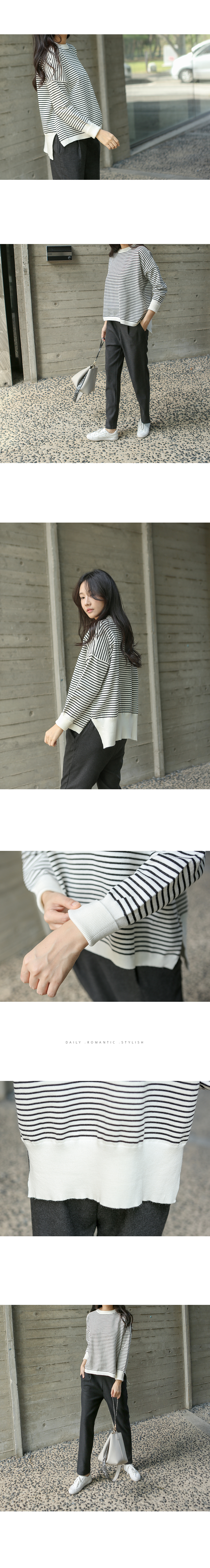 목선, 밑단, 소맷단의 배색 컬러감으로