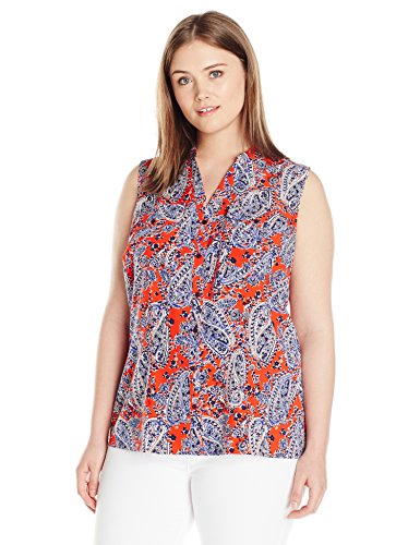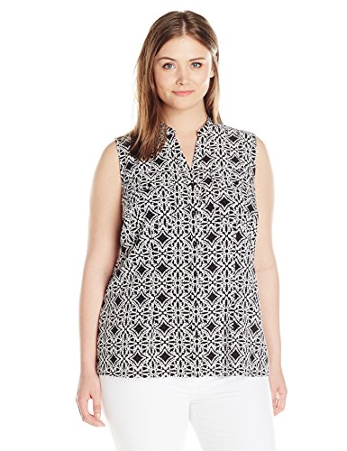 Printed sleeveless mandarin collar blouse