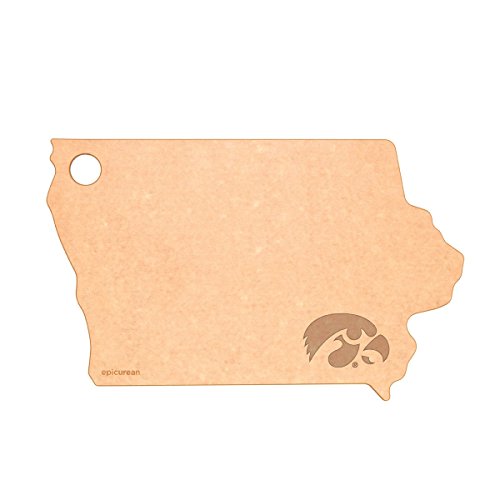 [Product Information]- State of Iowa serving and cheese board; features Iowa Hawkeyes laser engraved logo; measures 14 by 9 inches; Natural/Slate