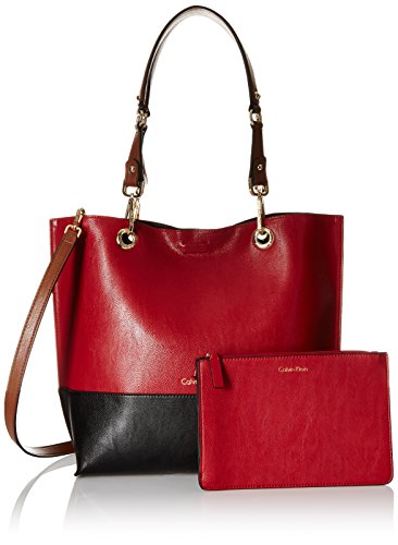 Calvin Klein Reversible N/S Novelty Tote Bag, Red/Black/Luggage Combo, One Size