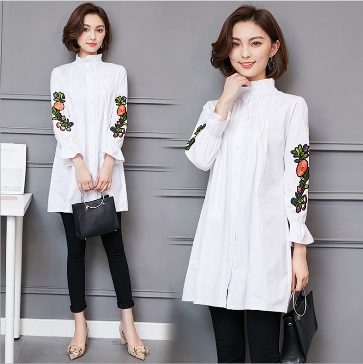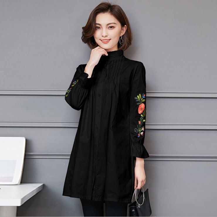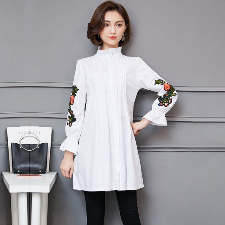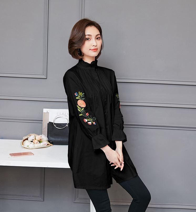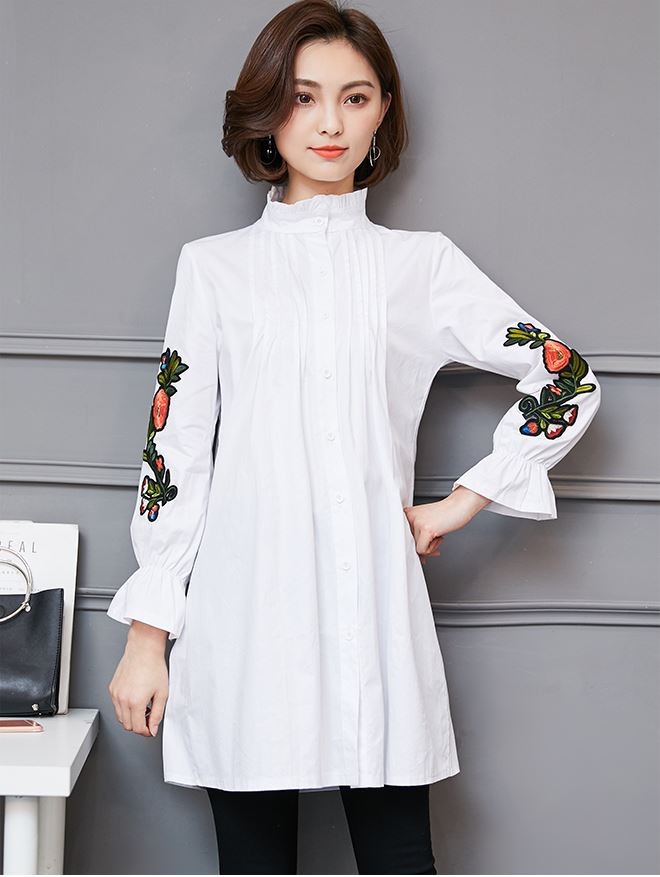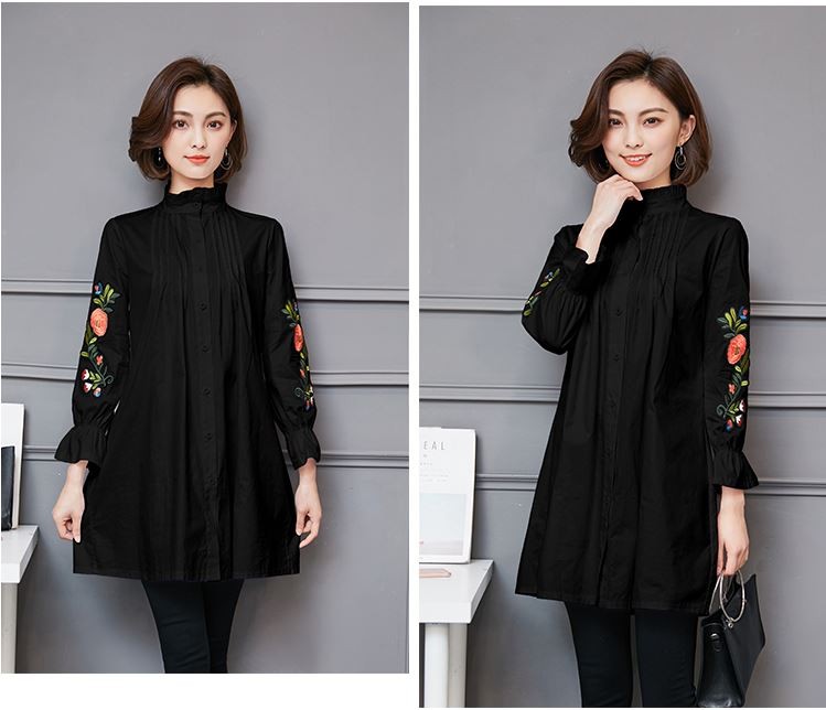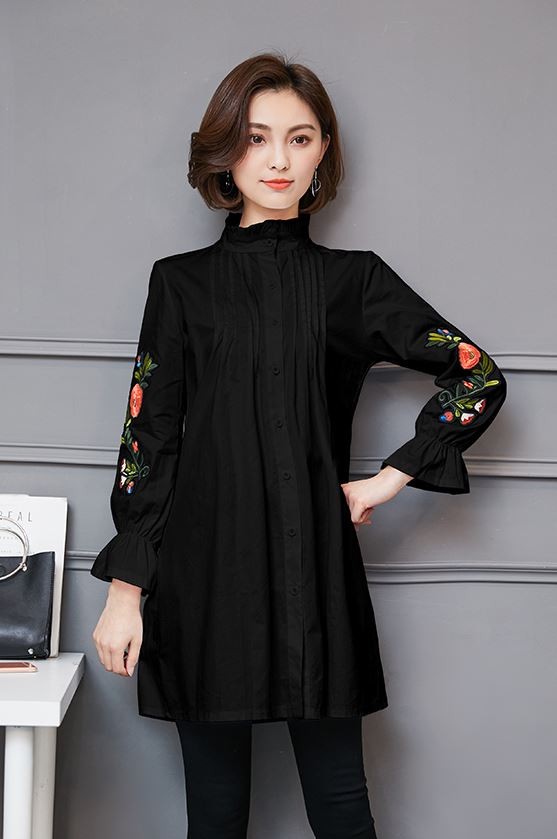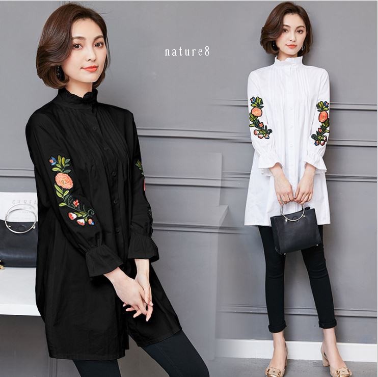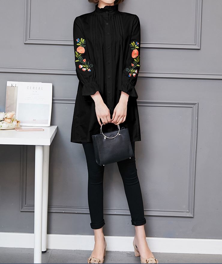 ゆったりシルエットできやすいタイプ!袖の刺繍が可愛いチュニックワンピース! ナチュラルラインで着心地抜群!!