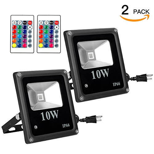 10W RGB LED Flood Lights, SHINE HAI IP66 Waterproof Outdoor Color Changing LED Security Light, 16 Colors 4 Modes with Remote Control, Wall Washer Lighting Stage Light with US 3-Plug, 2-Pack