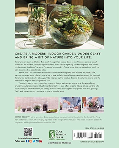 Terrariums are back and better than ever! If you haven't seen this virtually foolproof and no-fuss way to bring nature indoors in the last forty years, you are in for a treat. Whether you live in an apartment, are chained to an office desk, or just want to be surrounded by green, living things, creating terrariums is a delightful way to combine the worlds of home decor and gardening. Terrarium expert and teacher Maria Colletti makes designing your very own interior gardens easy with step-by-step photos of over twenty of her own designs. Get all of the information you need on the "it" plants of today--tillandsias (air plants), orchids, mosses, cacti, and succulents, along with "traditional" terrarium ferns.