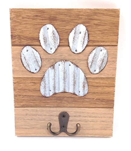 Plank-Look Plaque With Galvanized Dog Paw and Leash Hook