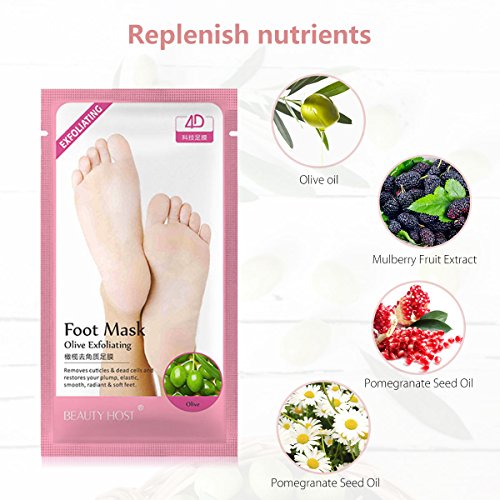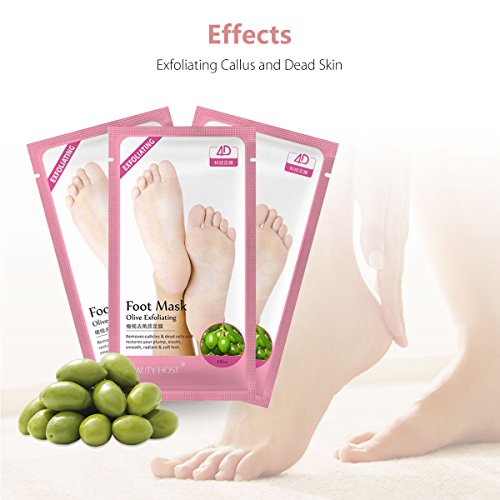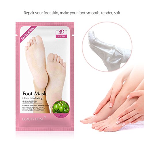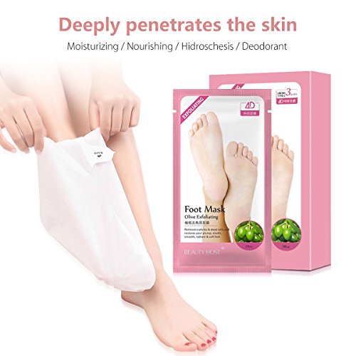 Studio : Breett Publisher : Breett Binding : Misc. Product Description Exfoliating Foot Mask Olive Exfoliating Foot Mask deeply penetrates the skin to replenish nutrients, moisturizes, nourishes and repairs the skin of the feet, improves cracking due to lack of care, rough, gentle feet, removes cutin and dead skin, and reproduces skin Full elastic, silky, so you have Symphony of soft beauty foot. Mask Contains: Olive oil, mulberry fruit extract, pomegranate seed oil, golden chamomile, suitable for any skin type Specifications: 30ml * 3 pairs Instructions: 1. After foot cleansing. Tear to open the foot mask along the opening. 2. Put on the foot mask and use the sticker to lock the foot mask. Press the outer layer of the mask lightly to make it touch the foot skin closely. 3. Massage your feet for 2-3 times during wearing the foot mask to enhance absorption. 4. Remove the foot mask in about 15-20 minutes, and rinse with clean water. Cautions: 1. This product is a single-use product. 2. Stop using again immediately if any discomfort after use. 3. Do not use the foot mask while the skin has injuries, wounds or swelling. 4. Skin sensitizers do part of the skin sensitive test, and then use after the test is nonirritating. Preservation method: Keep away from children; Store the product in a cool place, avoid direct sunlight.