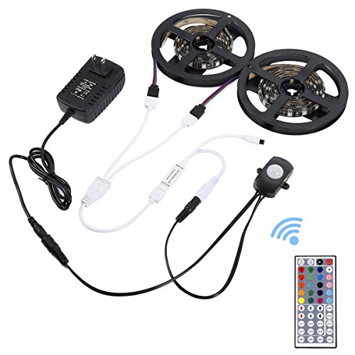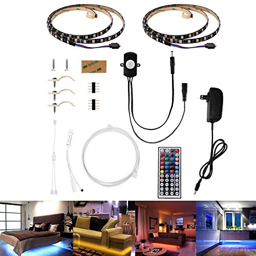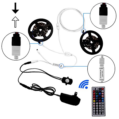 Package Include: 2 separate 1.2m(3.94ft) led strip lights 1 x 2m(6.56ft) connect load wire 1 x power adapter 1 x 44-key remote control 1 x Motion Sensor 6 x Retaining Clips 6 x screws