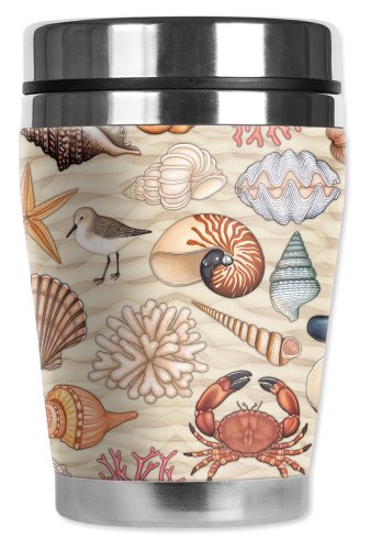 Mugzie Beach Combing "Mini" Travel Mug with Insulated Wetsuit Cover, 12 oz, Black