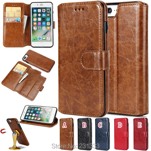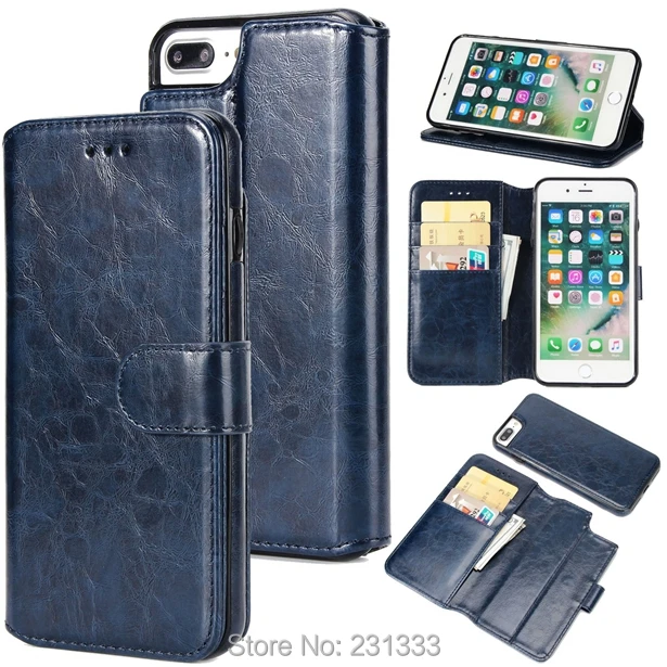 Size:Stone Multi function Luxury Flip Detachable Cell phone Crazy horse Mad
