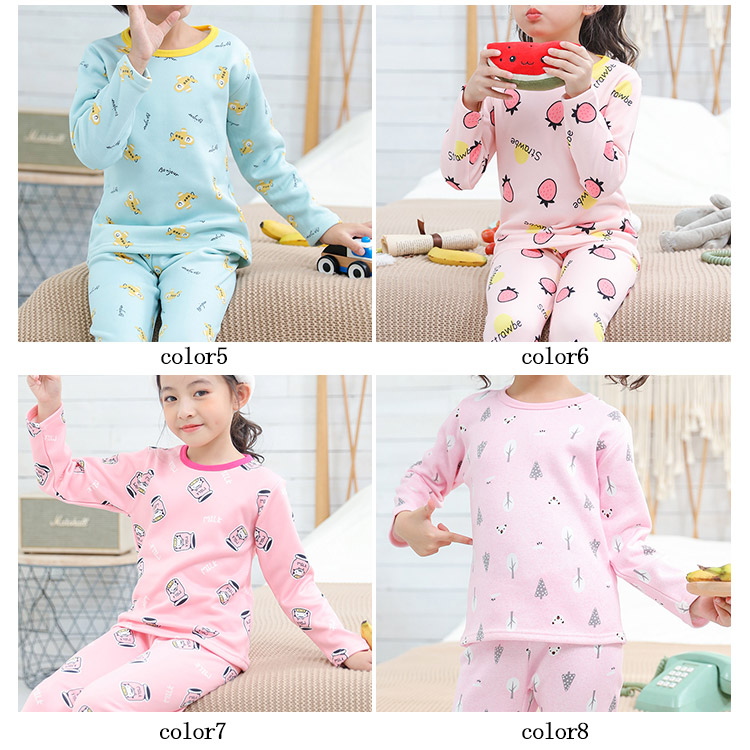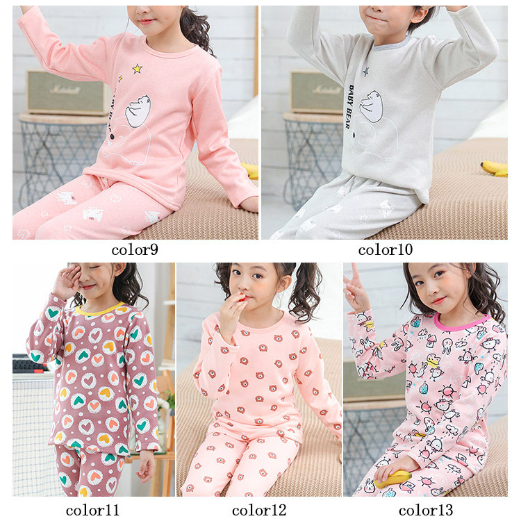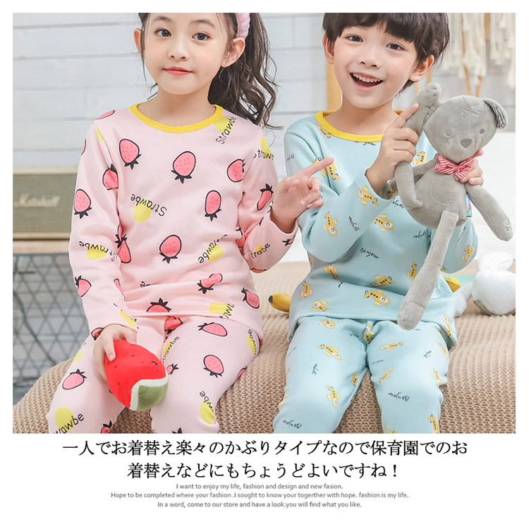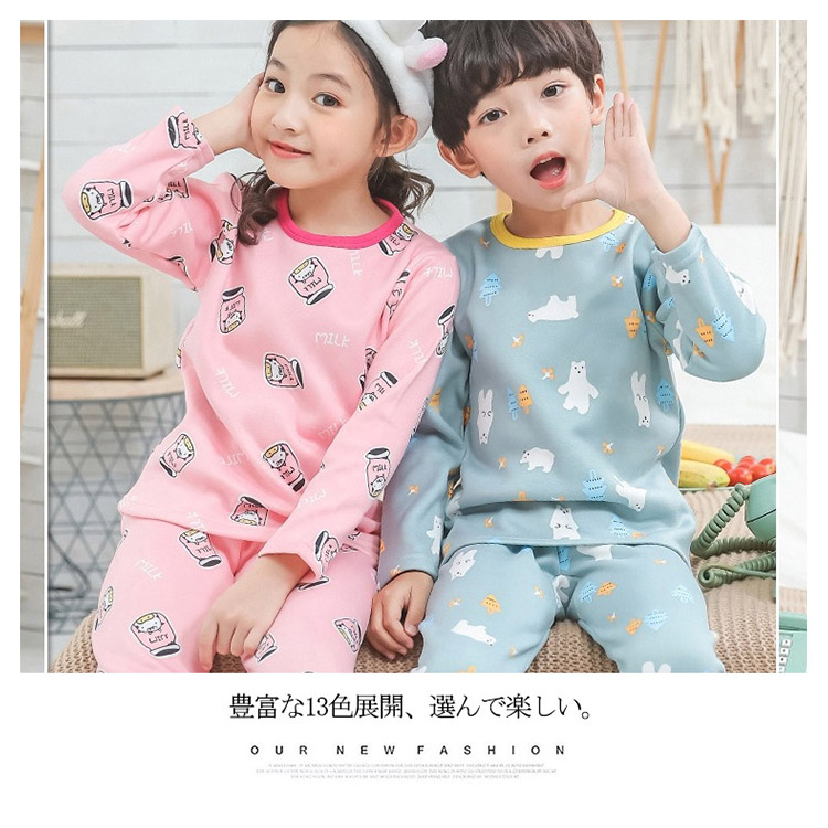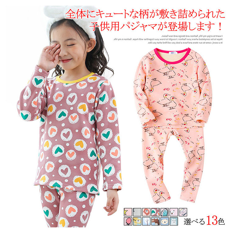 | 全体にキュートな柄が敷き詰められた子供用パジャマが登場します!お肌に優しい素材、裏地で柔らかく着心地抜群!豊富な13色展開、選んで楽しい。着ぶくれしないからスリーパーと合わせて冬用にもお勧め。一人でお着替え楽々のかぶりタイプなので保育園でのお着替えなどにもちょうどよいですね! | |