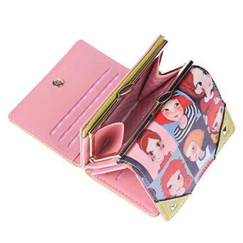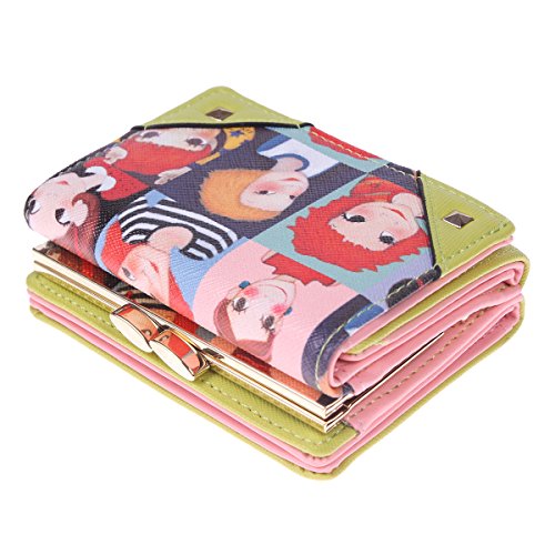 -. Feature : ベーシックデザインの二つ折り短財布 / カラフルカートゥーンプリントは可愛い / 中身には札入れx1、写真入れx2、カード入れx8。 / 柔らかくフェイク革使用なので手触りが心地よい。 / サイズ(約):縦10.5cm×横8cm×厚さ4cm。