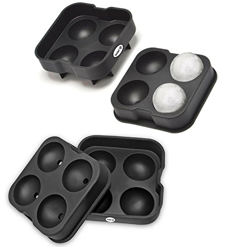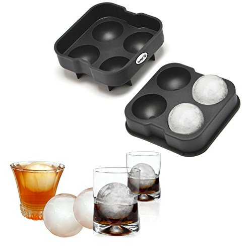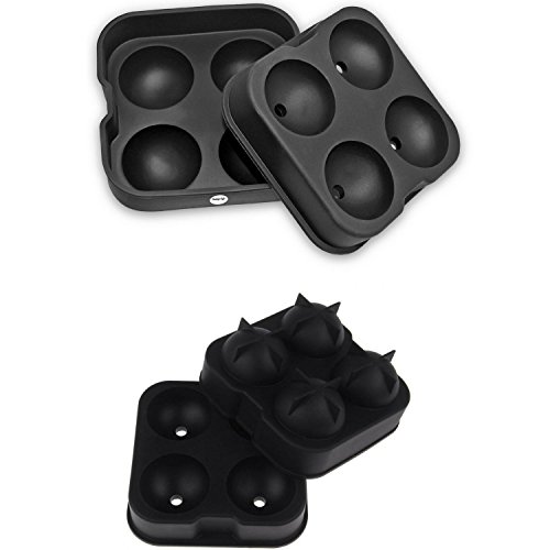 2 Pack.Big novelty flexible silicone ice ball maker mold tray. Set of 4 large 2” inch spheres shapes.Make giant spherical bar,whiskey,cocktails,sphere cubes.Best BPA free round cube balls molds trays