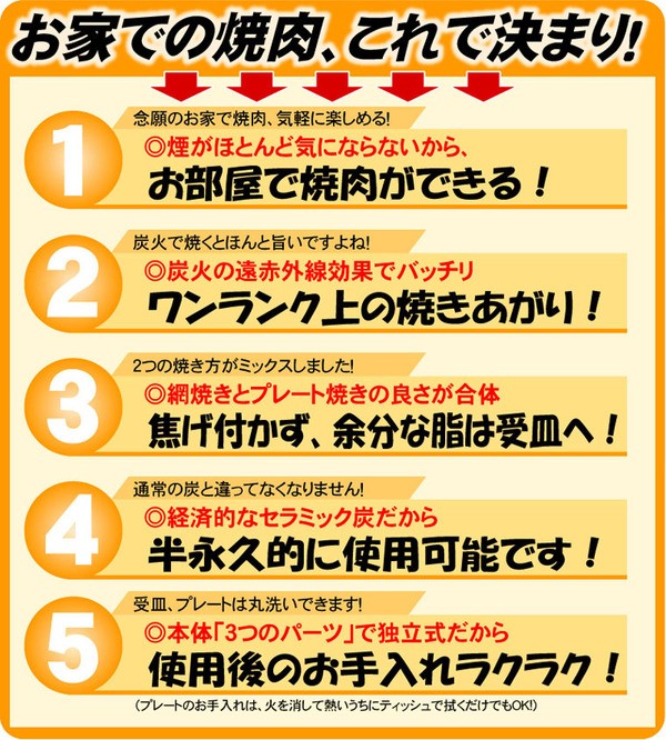 焼き肉、焼肉、ヤキニク、焼肉調理器、焼き肉調理器、炭焼き効果、BBQ、バーベキュー、家庭用、フライパン、遠赤外線、半永久