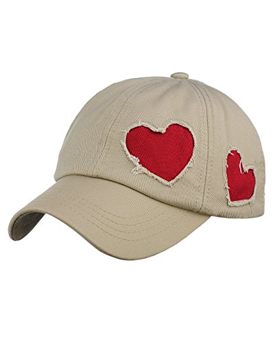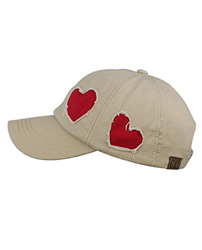 C.C Women's Heart Cut Design Cotton Unstructured Precurved Baseball Cap Hat