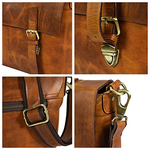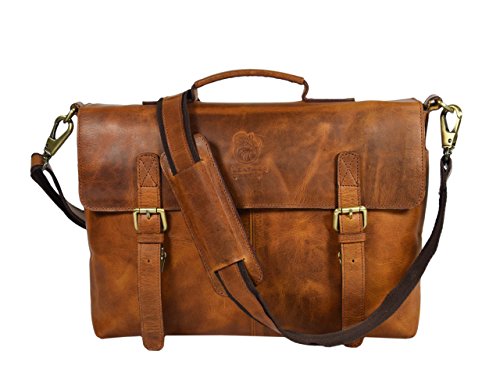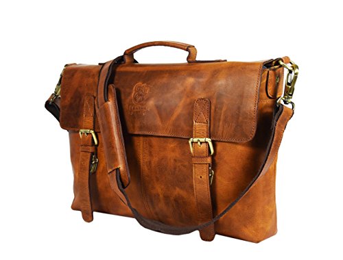 -. Brand : LEATHER CASTLE -. Color : TAN -. Department : mens -. Feature : Made with Finest Quality 100% GENUINE BUFFALO LEATHER. Beautifully handcrafted by traditionally skilled artisans from India. / Measurements ( In cms ) - 37 (Length ) x 27 ( Height ) x 6 ( Width) . Perfect size to fit a 15 Inch Laptop or MacBook / Front: 2 large split pockets, Inside - 1 cushion padded compartment for laptop, 2 small pockets for mobile, 1 pen pocket / 1.5 inch wide and 58 inch long adjustable & detachable leather shoulder strap with double hand carry. On each end, there is a hand carry to carry this bag in hand or on shoulder. / Attractive Brush-Stroke Design for Enhanced Look. Heavy Duty Matching Antique Brass Fitting Accessories. Heavy duty POLYSTER lining inside. -. Label : Ismail Exports -. Manufacturer : Ismail Exports -. PackageQuantity : 1 -. ProductGroup : Apparel -. ProductTypeName : LAGE -. Publisher : Ismail Exports -. Size : Medium -. Studio : Ismail Exports -. Title : LEATHER CASTLE 15 Inch Laptop Leather Briefcase Satchel Business Messenger Bag Crazy Hunter Leather Briefcase