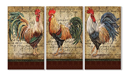 Stupell Home Décor Le Coq 3-Piece Triptych Wall Plaque Set, 11 x 0.5 x 17, Proudly Made in USA