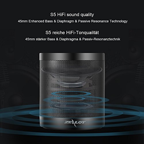 ZEALOT S5 mini Bluetooth Lautsprecher Hifi Bluetooth Lautsprecherbox mit 3.5mm Aux Eingang, TF/Micro SD Karten, USB-Stick verwenbar fur smartphones und andere Gerate