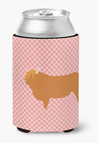 Caroline's Treasures BB7820CC Highland Cow Pink Check Decorative, Can Hugger, Multicolor
