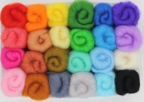FLORAVOGUE 24 Colors Kit Needle Felting Wool Yarn Roving DIY Craft Materials (24Colors×5g)