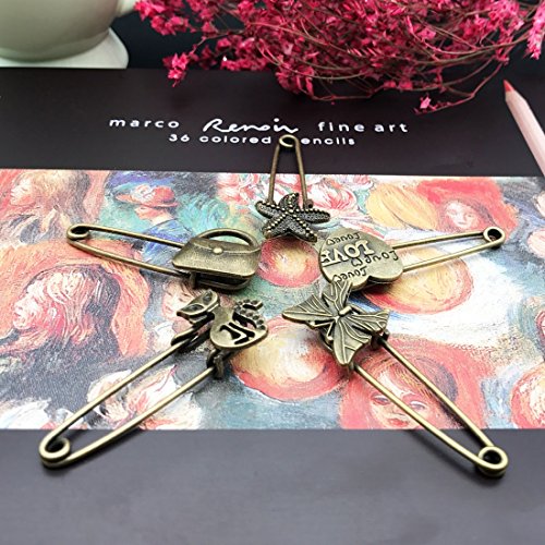 -. Title : JJTZX Safety Pins -4Pcs Antique Bronze Rabbit Head Flower Pine Cone and Tree Branch Brooch Pins