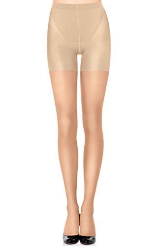 - Feature : Sheer look on legs, Slims your tummy, thighs and rear / Mega compression zones, Invisible, reinforced toe / Comfortable tummy-taming panel, Cotton gusset, wear as underwear / Fabric Content: 85% Nylon, 15% Lycra Spandex/Elastane, Style 913