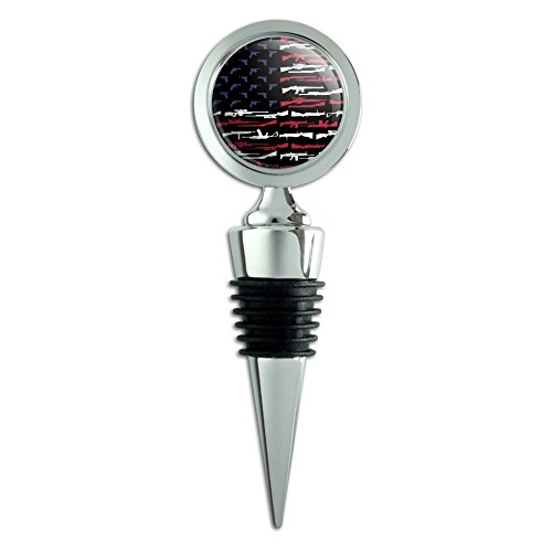 -. Brand : Graphics and More -. Feature : You'll want to raise a glass to this attractive, sturdy stopper. Makes a great gift! / This attractive stopper fits most standard wine, liquor and oil bottles. Sold individually. / The stopper is made of chrome plated metal and rubber, and is approximately 1.5" (3.8cm) x 4.5" (11.4cm) in size. Handwash only. / A bold design that promotes the Second Amendment's right to bear arms. / A Graphics and More product. -. Label : Graphics and More -. Manufacturer : Graphics and More -. MPN : WINE.STOPPER.Z000652 -. NumberOfItems : 1 -. PartNumber : WINE.STOPPER.Z000652 -. ProductGroup : Kitchen -. ProductTypeName : KITCHEN -. Publisher : Graphics and More -. Studio : Graphics and More -. Title : American Gun Flag USA Second 2nd Amendment Wine Bottle Stopper