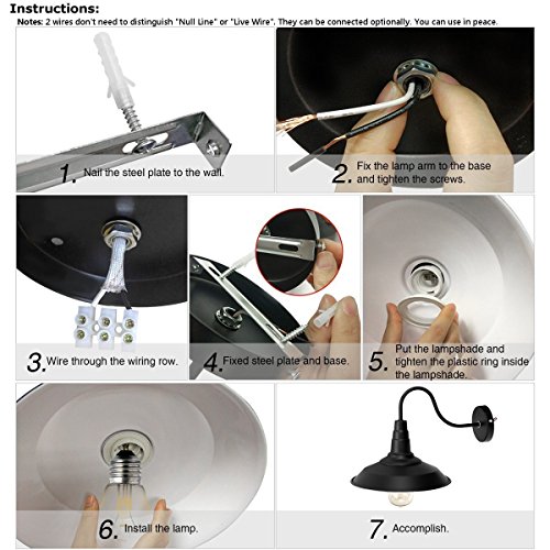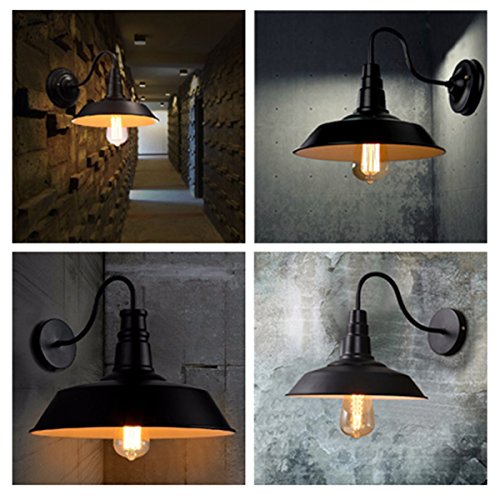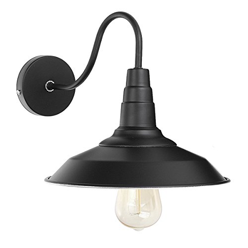 Jeteven Metal 1-light Wall Sconce Lamp Shade Industrial Gooseneck Barn Light Fixtures for E27 Bulb, Black
