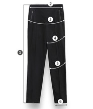 | 尺码 | ①裤长 | ②腰围 | ③臀围 | ④大腿围 | ⑤膝围 | ⑥脚围 | ⑦前裆 | ⑧后裆 | ||