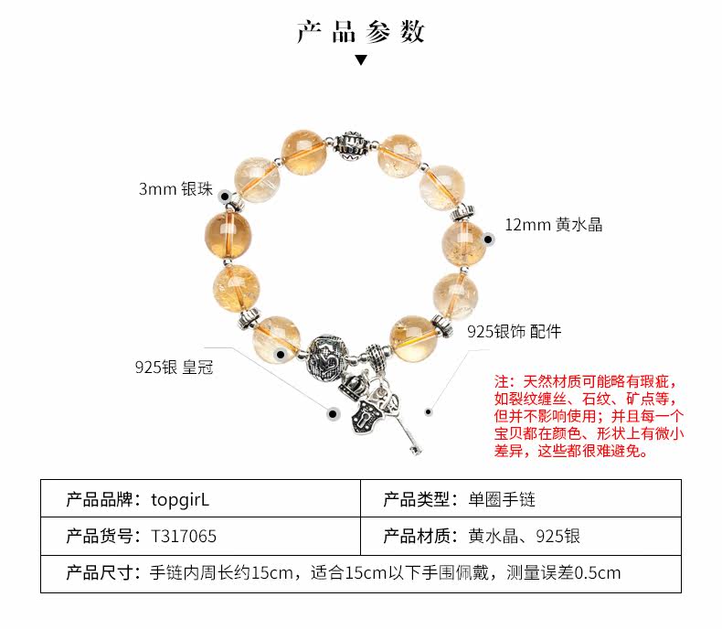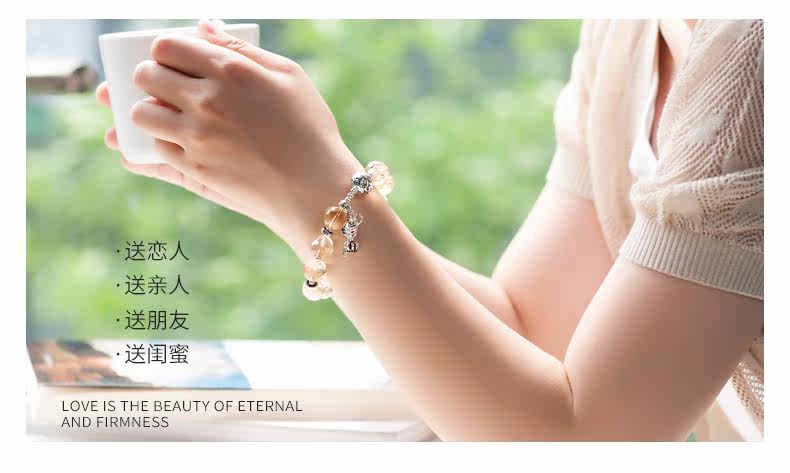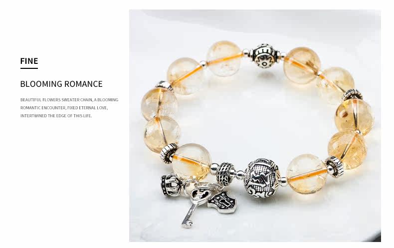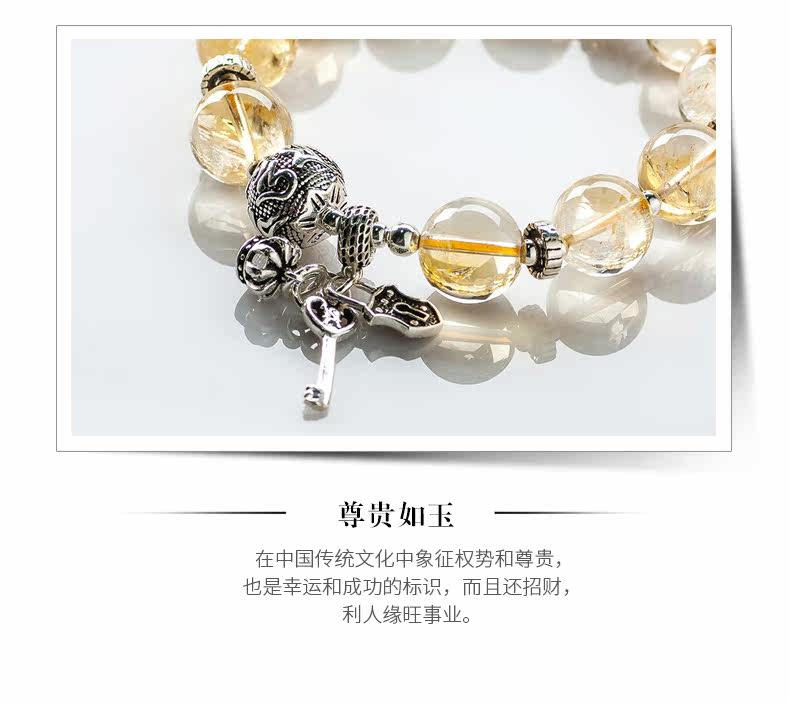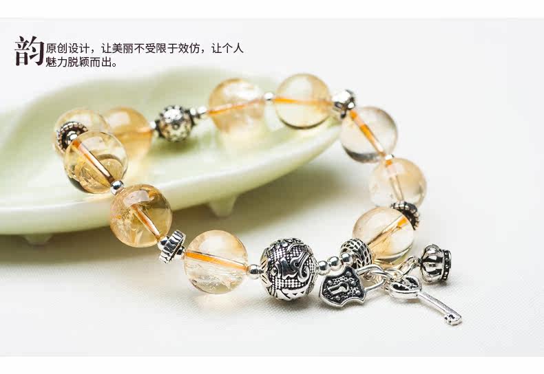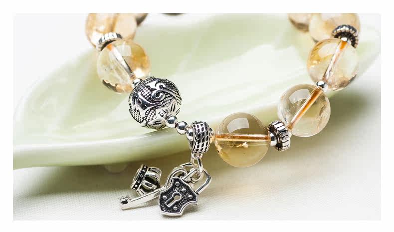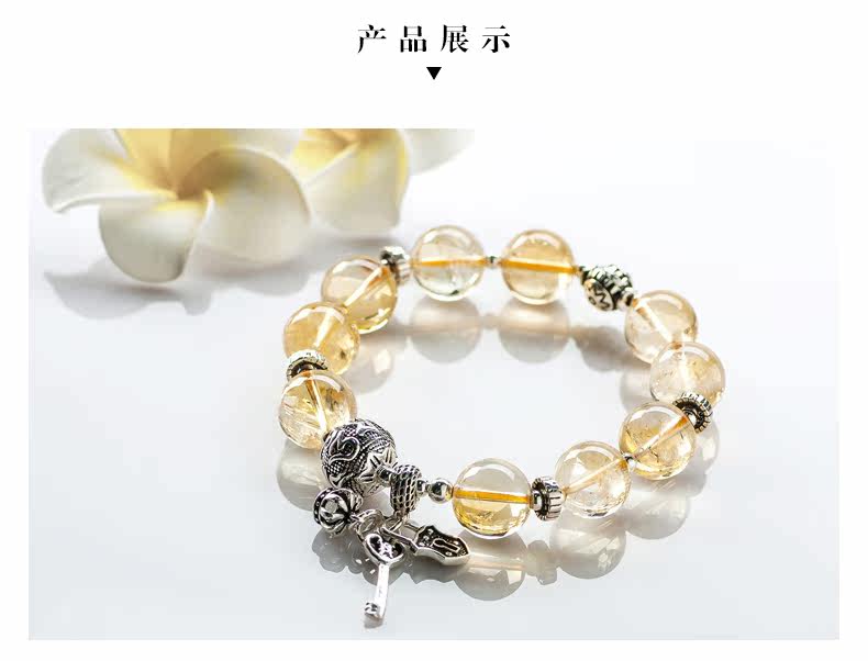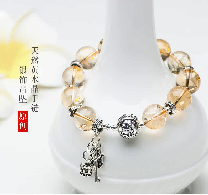 天然黄水晶手链女简约925银饰品个性手串森系复古送礼