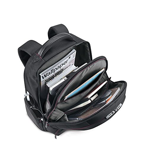 Solo 17.3 laptop backpack has a padded compartment for laptops up to 17.3” and a dedicated interior pocket for iPad or tablet. Hard-shell front zip down organizer section makes it easy to stay organized. Quick access pocket and zippered side pockets provide an extra area to store your belongings. Comes with 5 year warranty.Feature