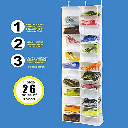 -. Feature : Height: about 160cm;Width: about 56cm;Depth: about 15cm / Quick and easy to assemble; No screws or fittings needed (Three hooks are included) / 26 divided compartments offer storage for pairs of shoes, hats, clothing accessories, bath and shower accessories, and other personal gear / A great over the door organizer for a bedroom, closet, dorm room, apartment living, and other tight living spaces / Shipping by ePacket,usually its takes 7-15 business days