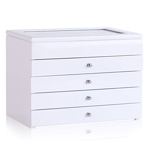 Rowling High Gloss Wooden Jewellery Box Armoire Bracelet Organizer 5 Layers Glass, White