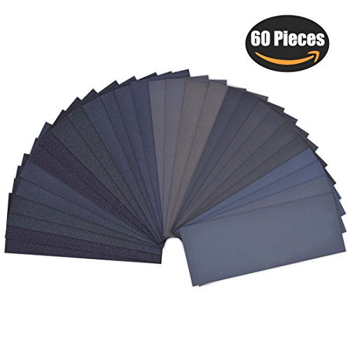 BESKIT Sandpaper, 120 to 3000 Assorted Grit Sandpaper for Wood Furniture Finishing, Metal Sanding and Automotive Polishing, Dry or Wet Sanding, 9 x 3.6 Inch, 60-Sheets