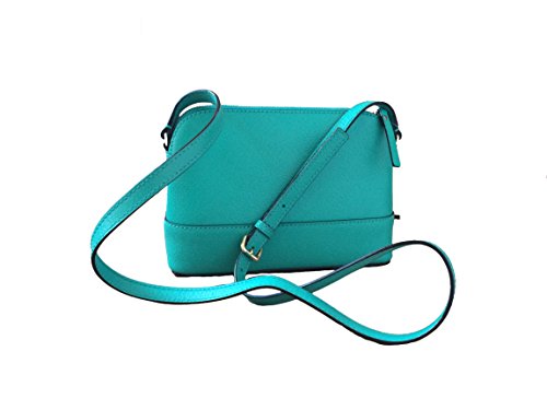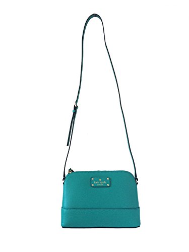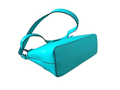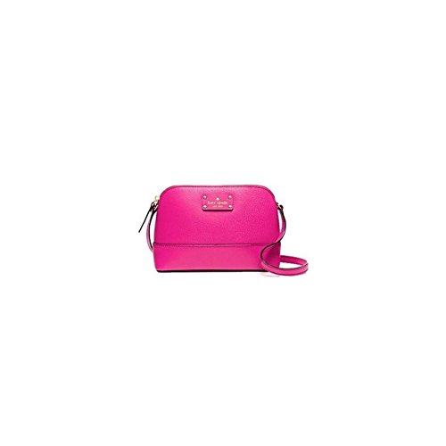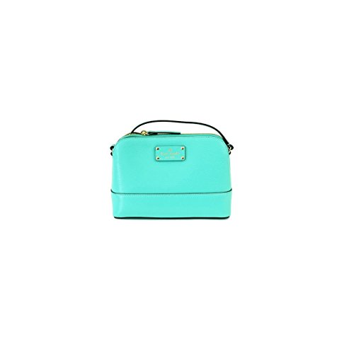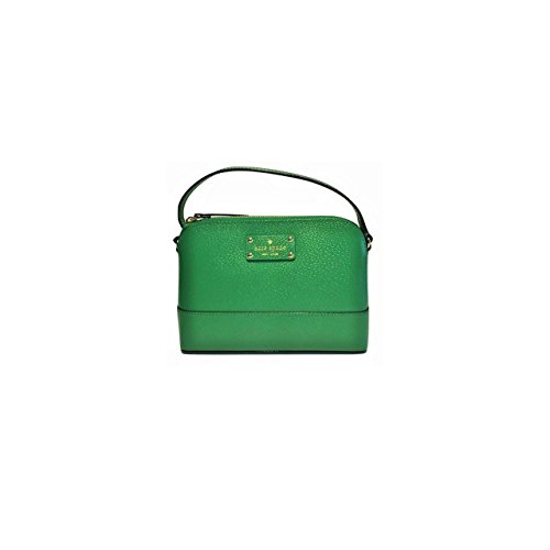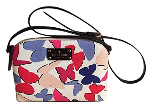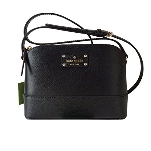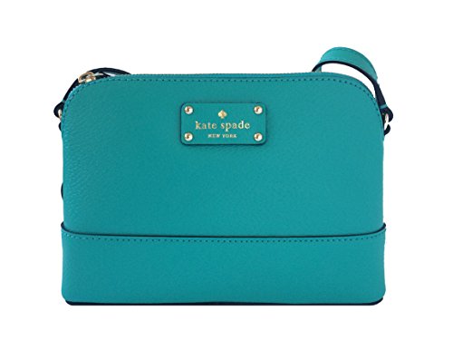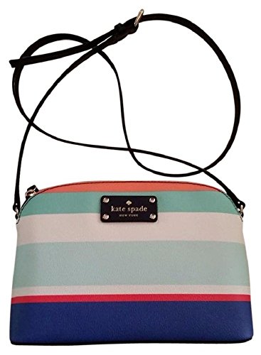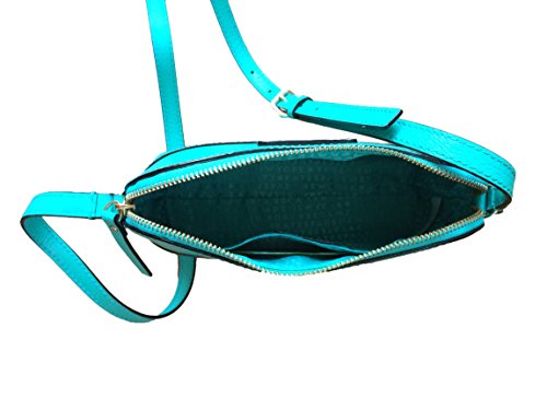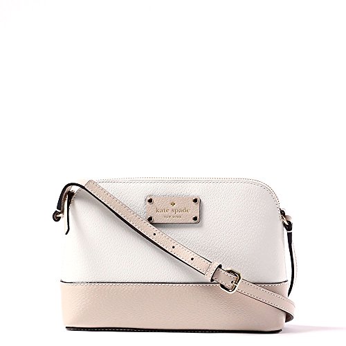 This compact Kate Spade cross-body is made of rigid boar-embossed cowhide leather with 14-karat light gold plated hardware. There is top stitch and contrasting piping detailing throughout. The interior is lined in Capital Kate logo print fabric and features an open slip pocket. It has a fully zippered top closure, along with Kate Spade license plate logo on the front. It has a single adjustable shoulder strap that has a drop of approximately 18 to 20 inches. It measures approximately 9 inches (L) x 6 inches (H) x 3 inches (W).Feature