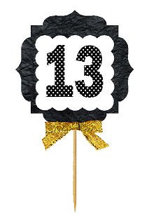 13th Birthday / Anniversary Gold Ribbon Hand Crafted Novelty Cupcake Decoration Toppers / Picks -12ct