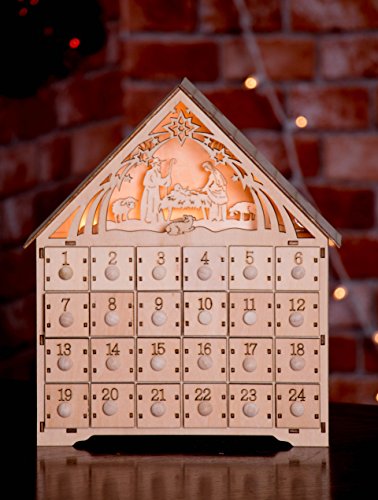 Nativity Scene Advent Calendar by Clever Creations | Wooden 24 Day Countdown to Christmas Advent Calendar | Premium Christmas Decor | Light Up Nativity Wood Construction | 11.75” Tall